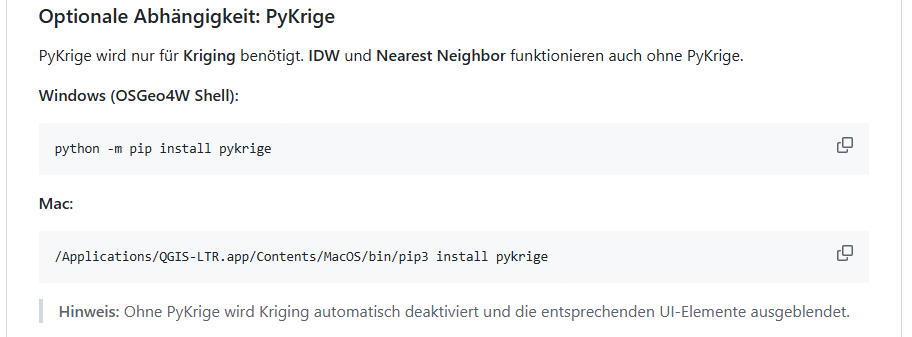 | Damit ist das Python-Paket in der QGIS-Python-Umgebung installiert und steht Ihnen in QGIS sowie den entsprechenden Plugins direkt zur Verfügung. | |