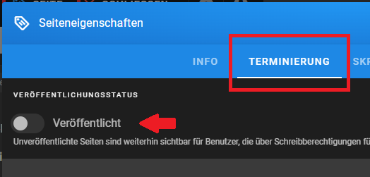 Hierfür unter dem Reiter „Terminierung“ in den Seiteneigenschaften den Schieber auf Grau/Links/Deaktivieren stellen. Danke!