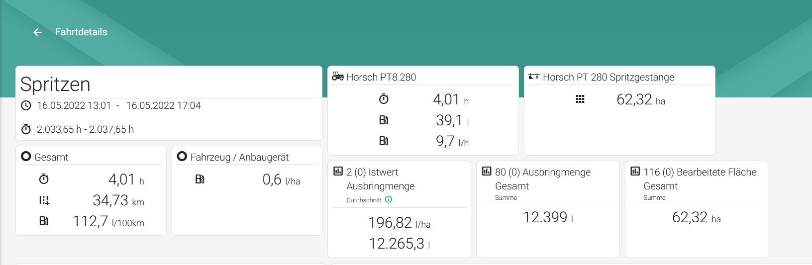Nachdem Sie die Maschinen mit einem Telemetriemodul und die Anbaugeräte mit einem Beacon ausgestattet haben, ihre Maschinen, Anbaugeräte, Orte und Felder im System hinterlegt haben und die Module mit den Maschinen gekoppelt sind, dokumentiert das System ab dem Start der Maschine bis zum Abschalten des Motors alle Parameter automatisch. Die Fahrten können Sie auf der Website einsehen. Hier finden Sie auch ihre Aufwandmengen nach getaner Arbeit wieder. Das System erfasst schlagbezogen alle Daten des Traktor Bus-Systems.