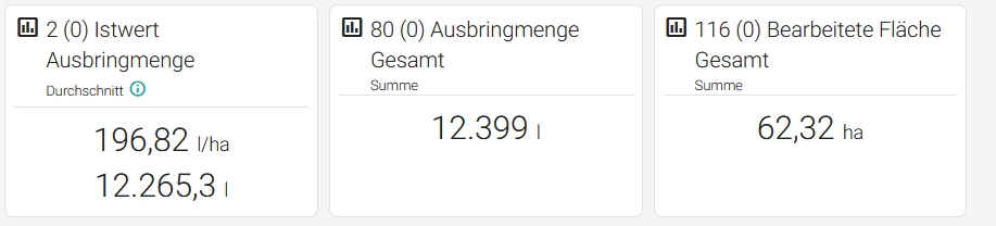 Die Ausbringmengen werden automatisch im System während der laufenden Arbeit erfasst und können jederzeit zu Dokumentationszwecken für die Ackerschlagkartei abgefragt werden.