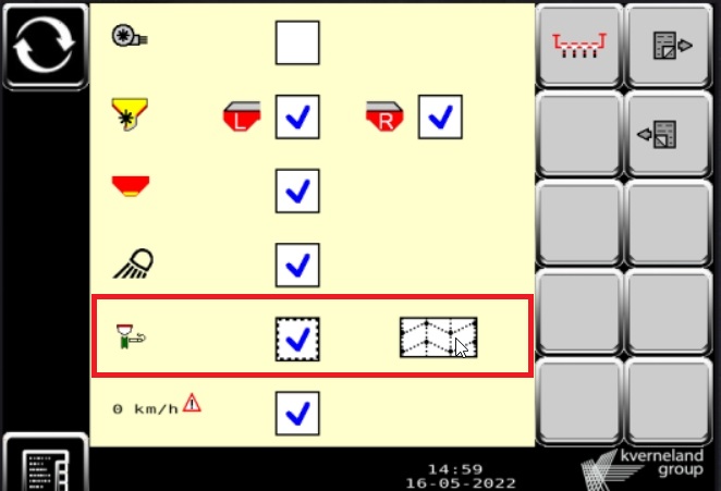 | Bevor Sie mit der Aussaat beginnen können, müssen Sie Geoseed aktivieren. Gehen Sie dazu in das Menü der Sämaschine (Schraubenschlüssel) und klicken Sie sich bis zu dem Symbol mit dem Säaggregat durch (Seite 4). Haben Sie Geoseed mit einem Klick auf das Kästchen aktiviert, können Sie nun das Muster auswählen. Zur Auswahl steht ein quadratisches Muster oder ein Dreiecksverband. Mit einem Klick auf die Sämaschine gelangen Sie danach wieder zurück zum Hauptmenü. |