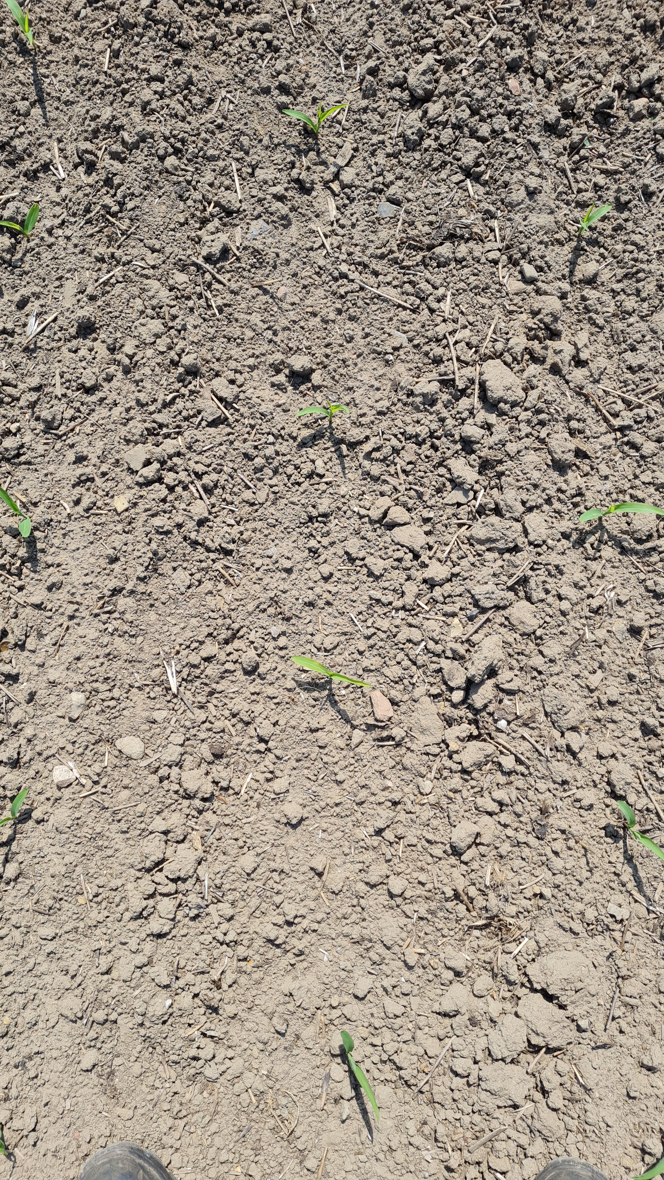| Nach der Aussaat können Sie die Ablage kontrollieren. Legen Sie dazu vorsichtig in einer Reihe 2-3 Körner frei. Links und rechts in den Nachbarreihen sollten Sie bei dem Dreiecksmuster nun mittig zwischen den vorher freigelegten Körnern jeweils ein Korn finden. Haben Sie das Rautenmuster gewählt, sollten alle Körner über die Aggregate hinweg nebeneinander liegen. |